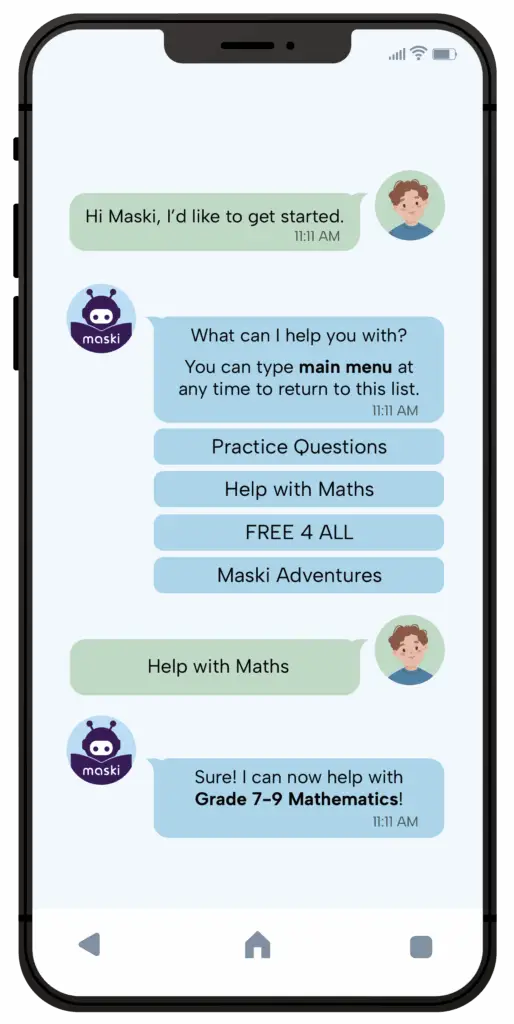 Learn Your Way with Maski® — work through questions at your own pace in a safe, moderated learning environment. Access Maski® anytime via WhatsApp, with a design optimised for low data usage, so learning stays affordable and always within reach.