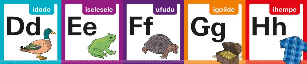 VUMA offers a language specific Alphabet Frieze. This is a great classroom resource for teachers to help learners recognise the sounds that correspond with the letters in the alphabet. The ISBN for the isiZulu Alphabet Frieze pack is 9780636167698.
